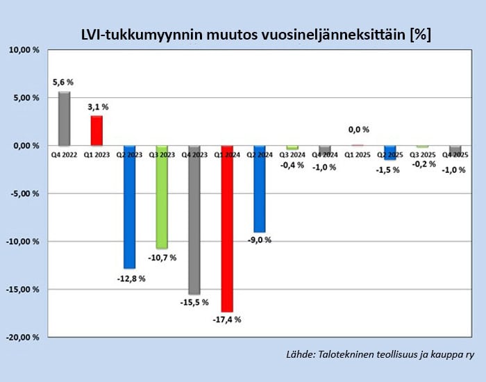 Vuosi 2025 petti odotukset – kasvua ei kuitenkaan ole peruttu LVI-tukkumyynnin viimeiselläkin kvartaalilla mentiin hiukan miinuksen puolella. Lämmitys- ja vesipuolen myynti oli aivan nollan ...